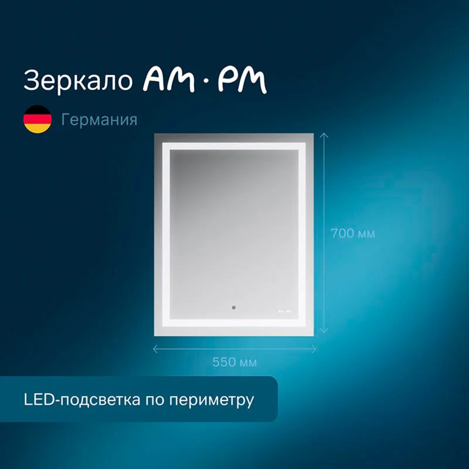 Зеркало Am.Pm Gem 55 см с LED-подсветкой по периметру, M91AMOX0551WG