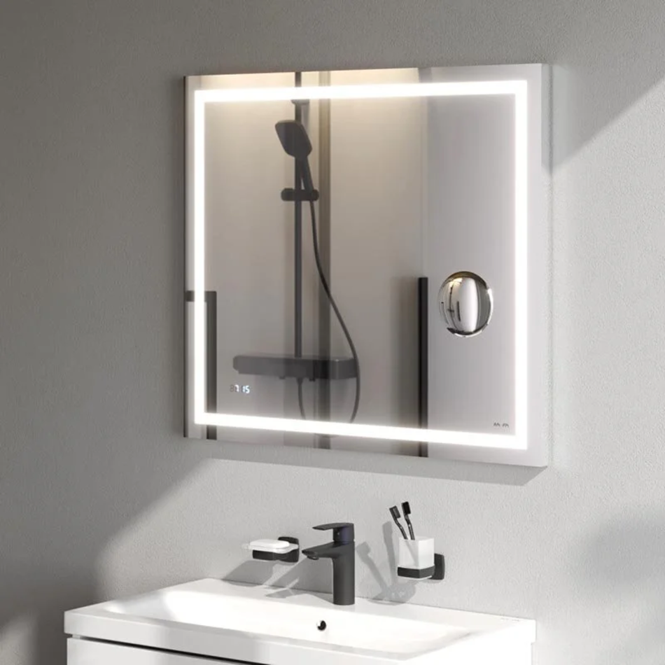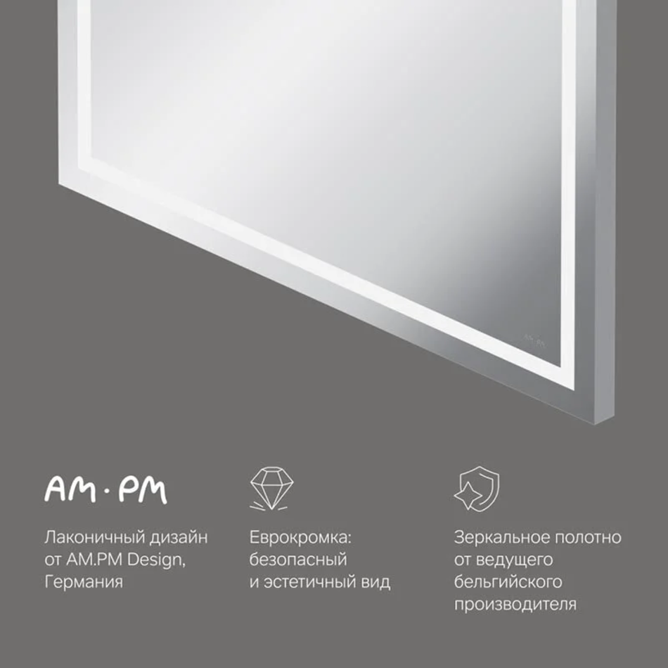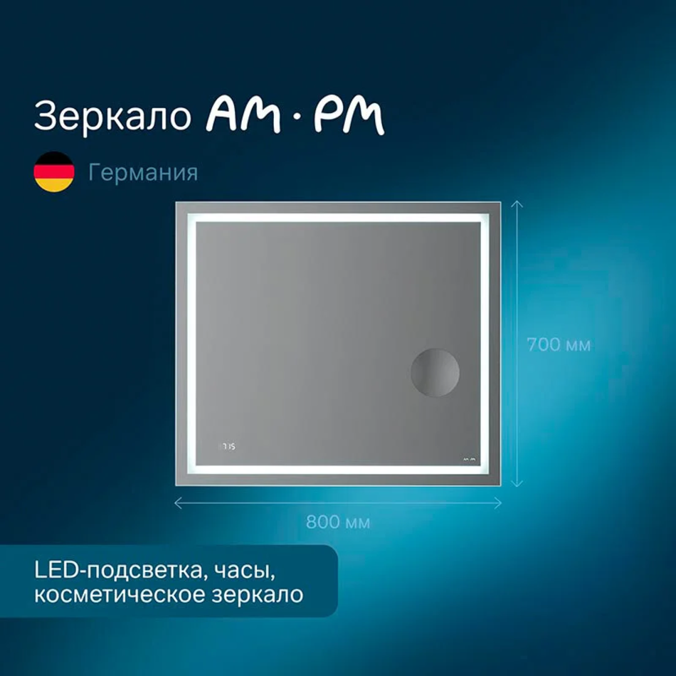 Зеркало Am.Pm Gem M91AMOX0803WG, 80 см с контурной Led-подсветкой, часами и косметическим зеркалом