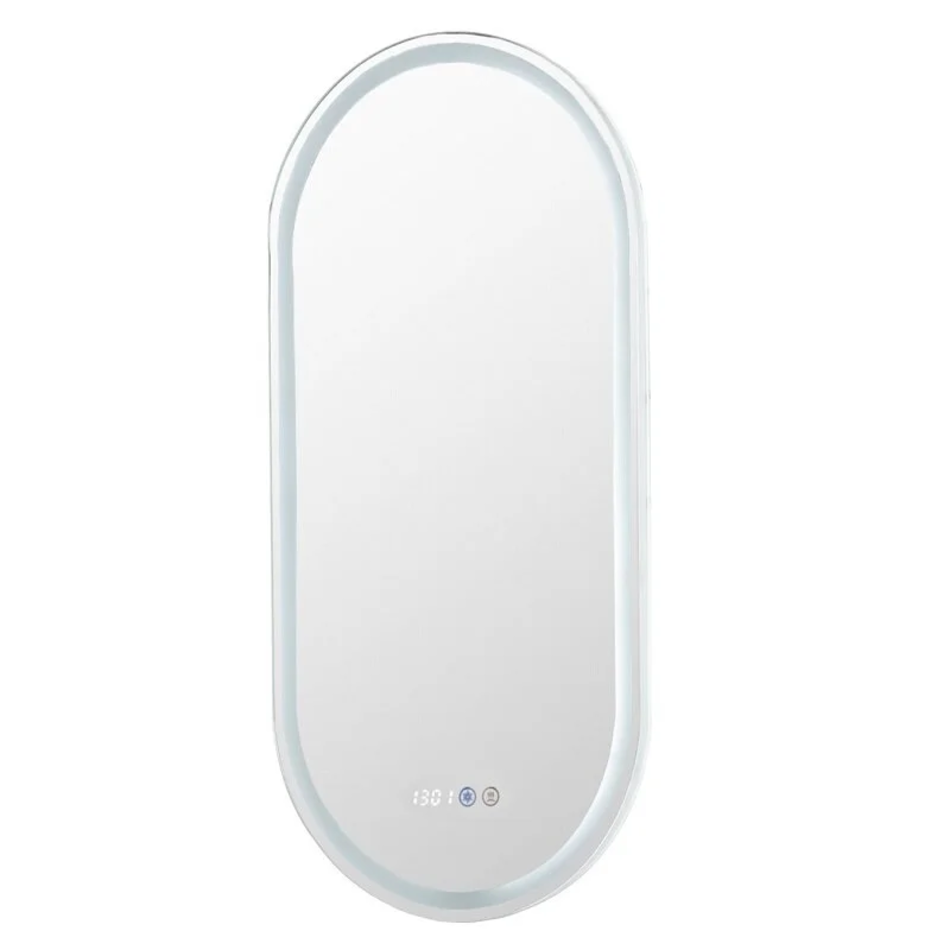 Зеркало Aquanet «Монте» 45 в овальном корпусе белого матового цвета идеально подойдет для интерьеров скандинавском стиле, модерн или хай-тек. Моделью можно управлять буквально парой касаний. Используя сенсорные кнопки, активируют светодиодную подсветку, настраивают часы, которые отображаются в нижней части передней панели. Устройство дополнено функцией «антизапотевание». Это значит, что воспользоваться им можно будет даже после очень горячей ванны — поверхность не помутнеет и не понадобится ее вытирать.Отсутствие рамки и толщина всего 29 мм создают ощущение, что зеркало парит в воздухе. Его можно разместить в ванной или спальне, в прихожей или гардеробной. При необходимости установка проводится как по вертикали, так и по горизонтали.