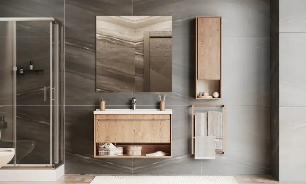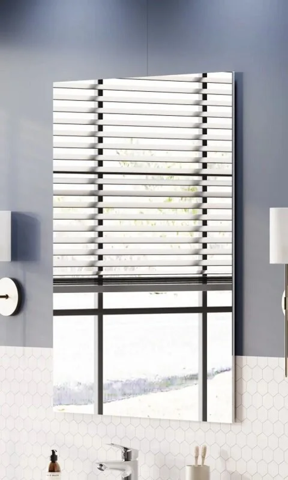 Подложка у зеркального полотна выполнена из влагостойкой ЛДСП, по боковых сторонам обработана по технологии "четверть". Благодаря чему создается эффект парящего зеркала.