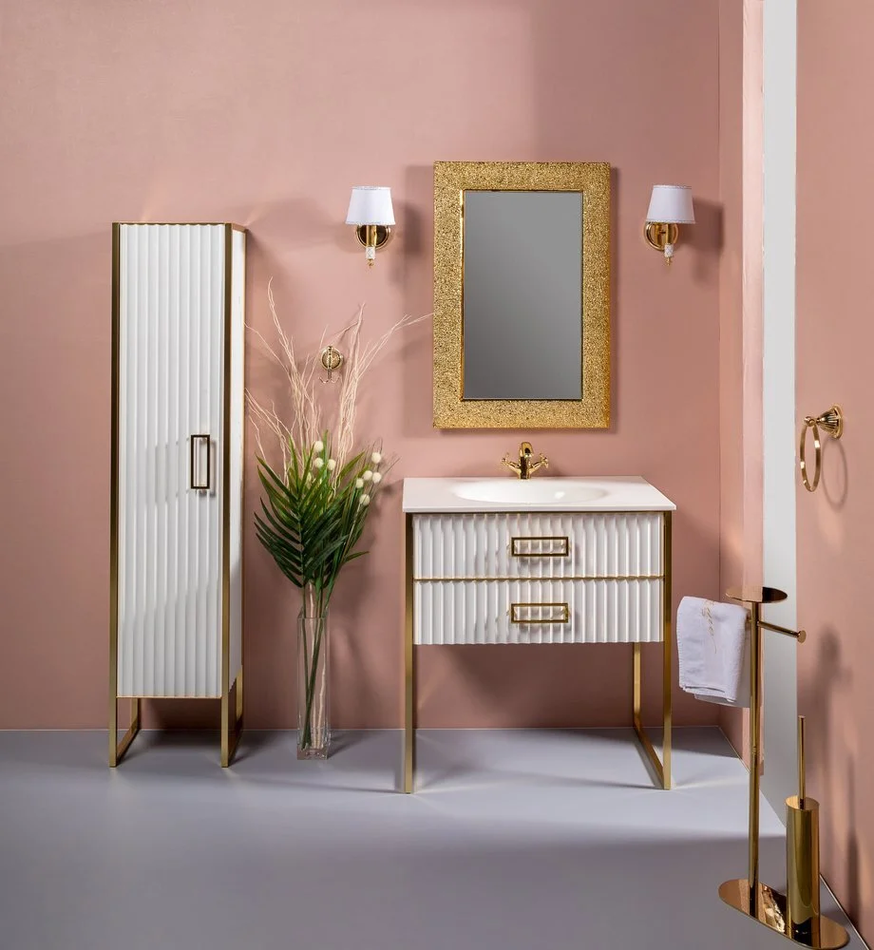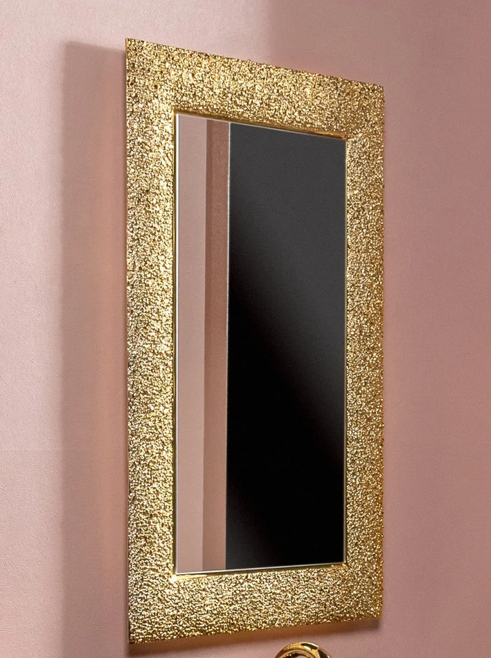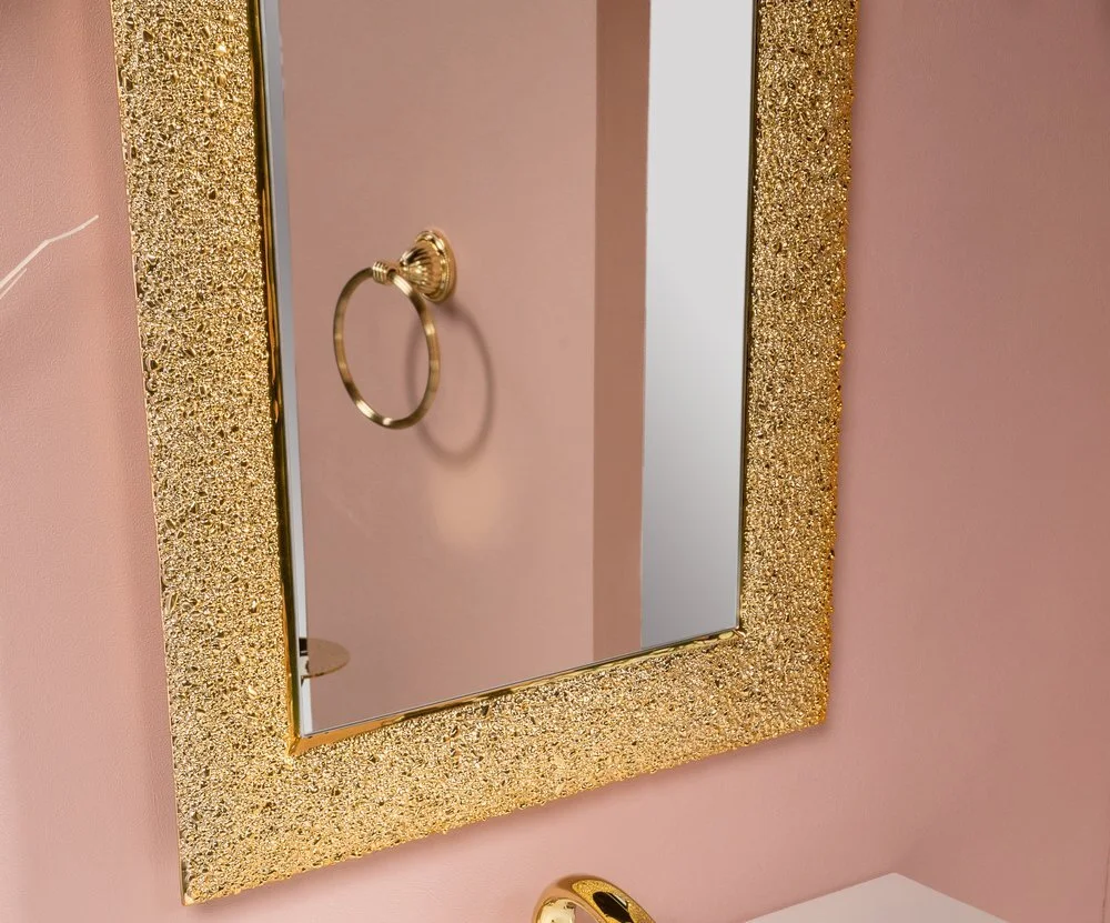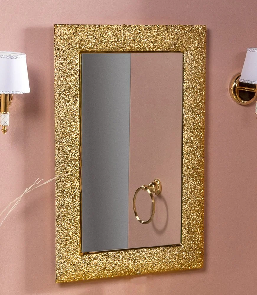 Зеркало С подсветкой Размер: 60 x 4 x 90 см Монтаж: подвесной Покрытие рамки: битое стекло Подсветка за полотном Форма: прямоугольная Материал: МДФ Цвет: золото