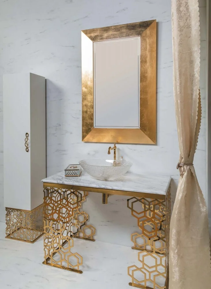 Зеркало выпуклое С подсветкой Размер: 80 x 4 x 120 см Монтаж: подвесной Подсветка за полотном Форма: прямоугольная Материал: МДФ, полиуретан Цвет: поталь золото