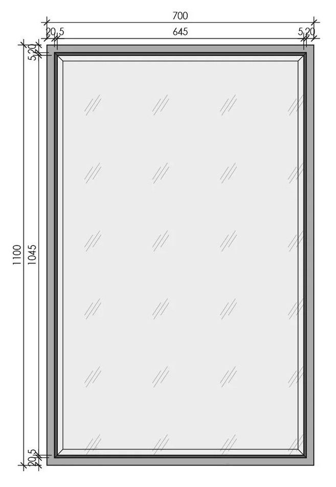 Зеркало С подсветкой Размер: 70 x 4 x 110 см Монтаж: подвесной Форма: прямоугольная Материал: МДФ, алюминий Цвет: белый, золото