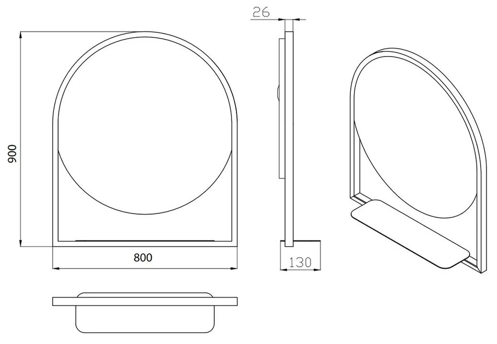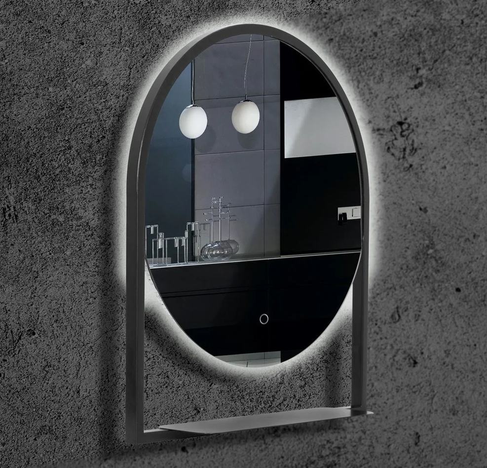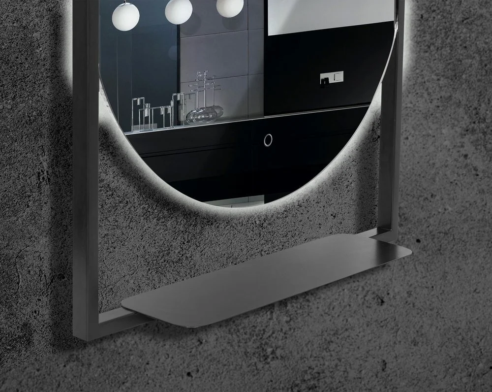 Зеркало Armadi Art Vallessi80 см с подсветкой, с полочкой, антрацит, IP24, 550/2