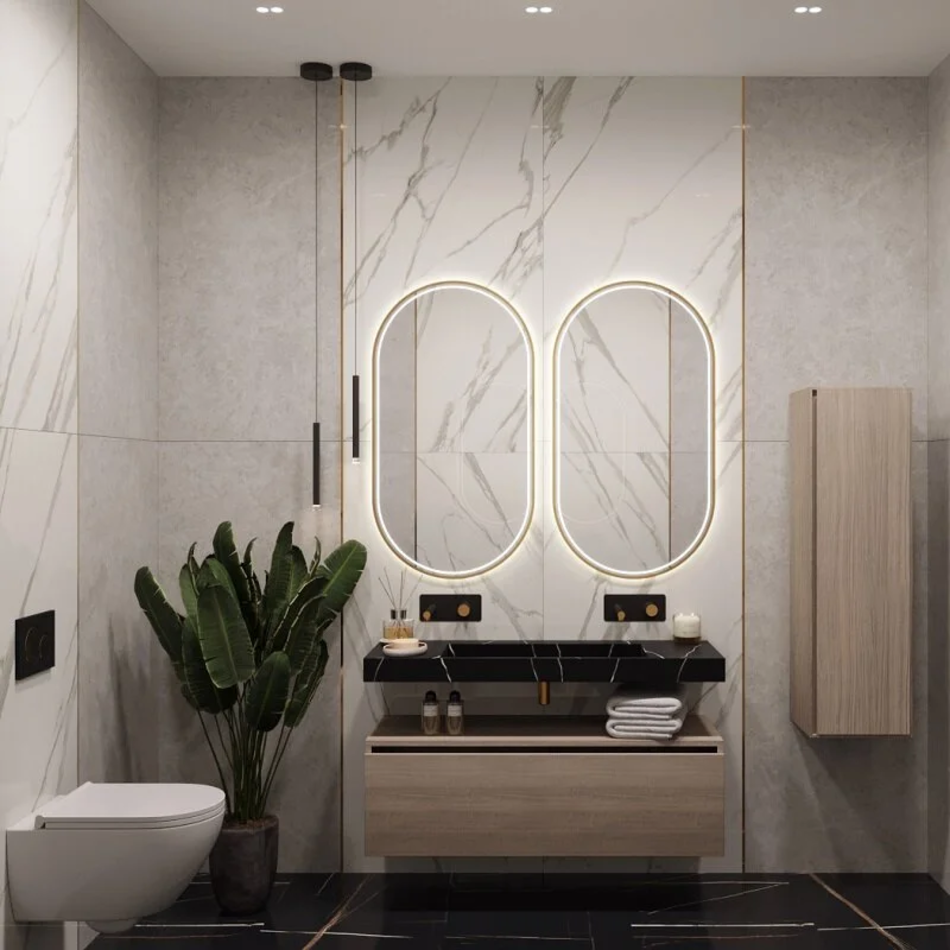 Зеркало с подсветкой Размер: 60 x 4.5 x 110 см Монтаж: подвесной Форма: овальная Цвет: золото