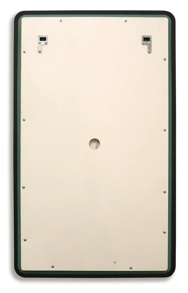 Зеркало лаконичной формы с матированной кромкой черного цвета.