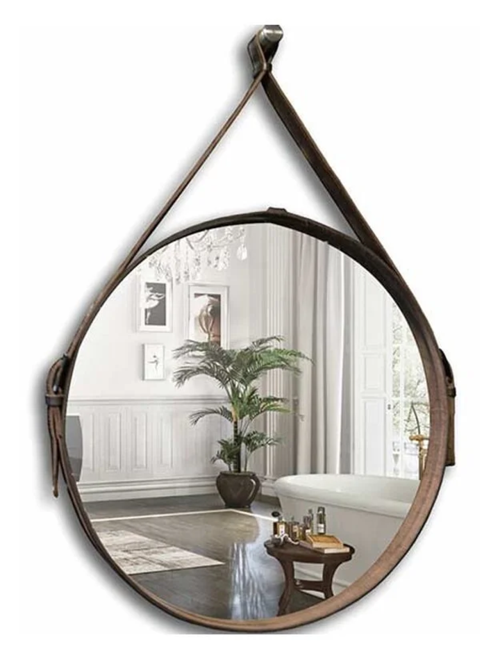 Зеркало Azario Капитан D51 см, с LED подсветкой, диммер, бесконтактный сенсор, коричневая кожа, LED-00002331