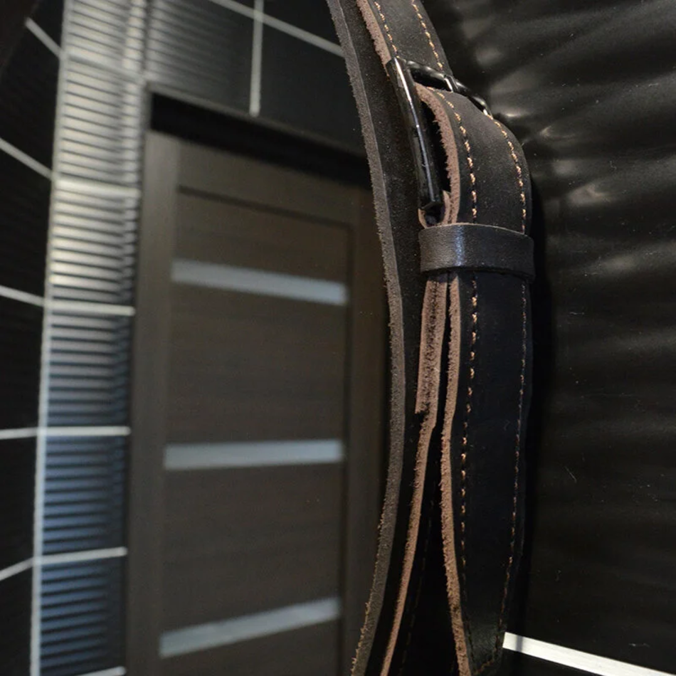 Зеркало Azario Капитан D51 см, с LED подсветкой, диммер, бесконтактный сенсор, коричневая кожа, LED00002331