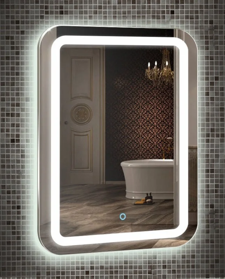Зеркало Azario Мальта-3 55 x 80 см, с LED подсветкой, сенсорный выключатель, подогрев, часы, белый, ФР-00001216