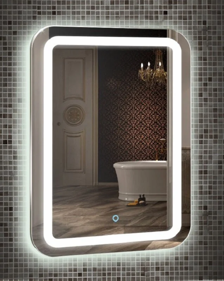 Зеркало Azario Мальта-6 55 х 80 см, с LED подсветкой, диммер, сенсорный выключатель, подогрев, часы, bluetooth, радио, белый, ФР-00001219