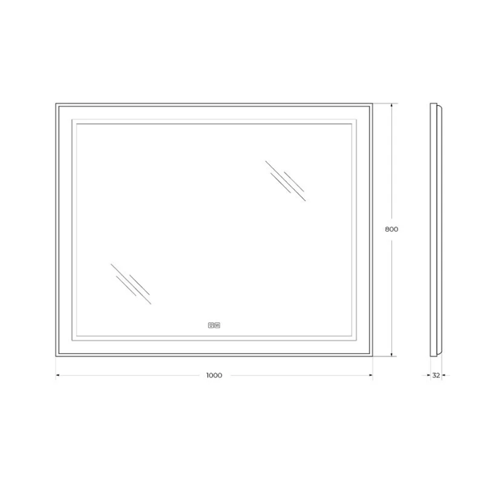 Зеркало в алюминиевой раме со встроенным светильником, сенсорным выключателем и подогревом, SPC-KRAFT-1000-800-LED-TCH-WARM, 1000x32x800
