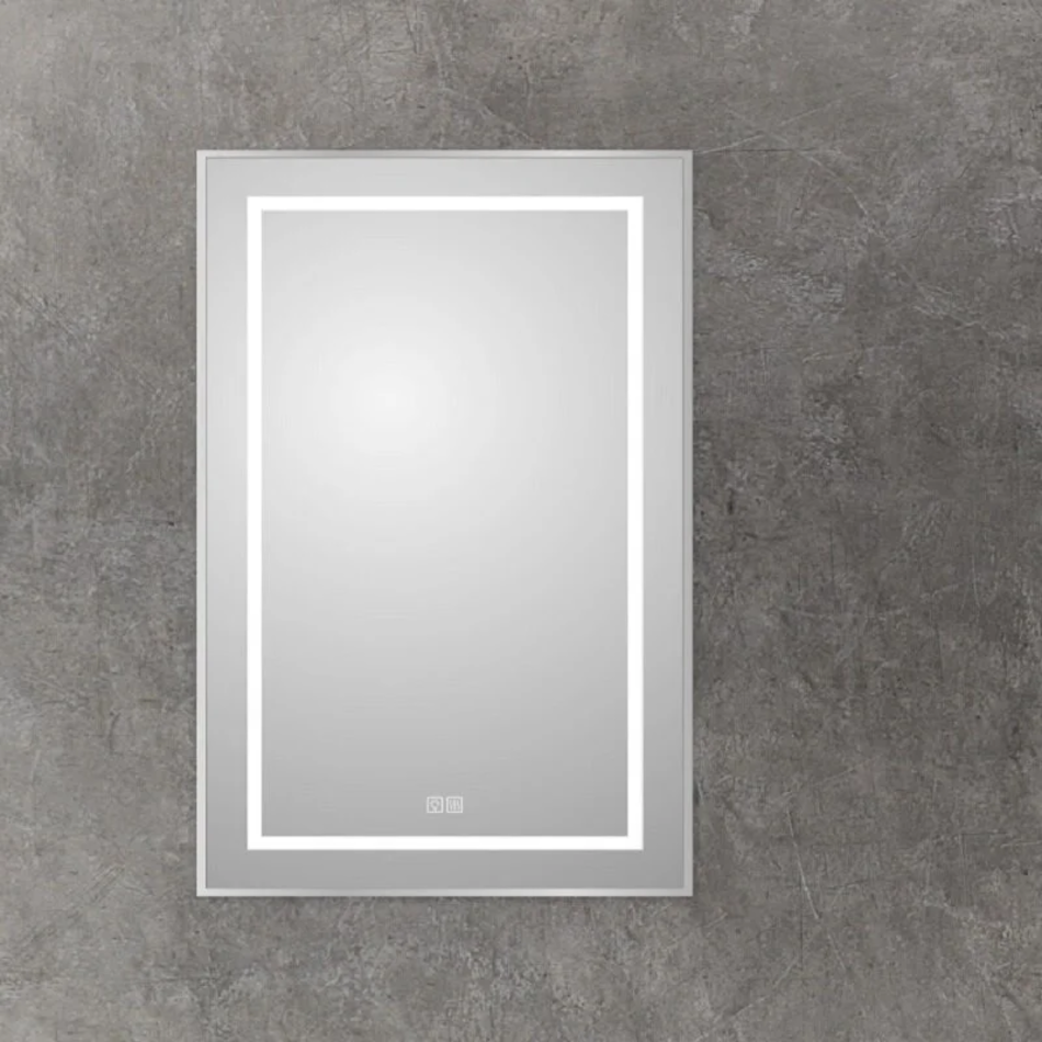 Зеркало в алюминиевой раме со встроенным светильником, сенсорным выключателем и подогревом