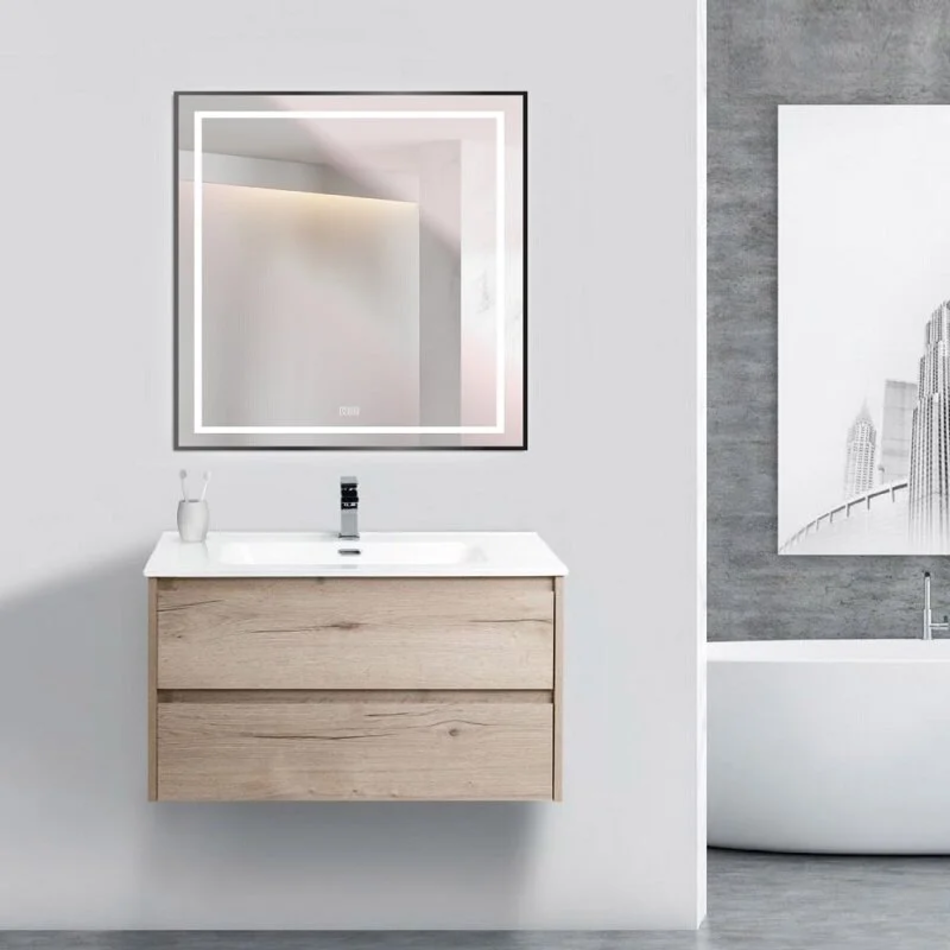 Зеркало в алюминиевой раме со встроенным светильником, сенсорным выключателем и подогревом
