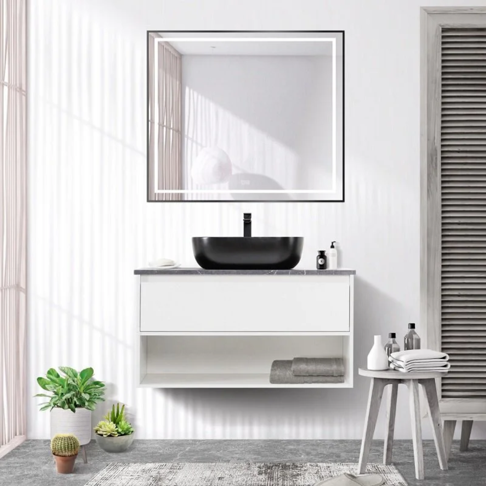Зеркало BelBagno Kraft SPC-KRAFT-900-800-LED-TCH-WARM-NERO, 90 см, со встроенной подсветкой и подогревом, черный