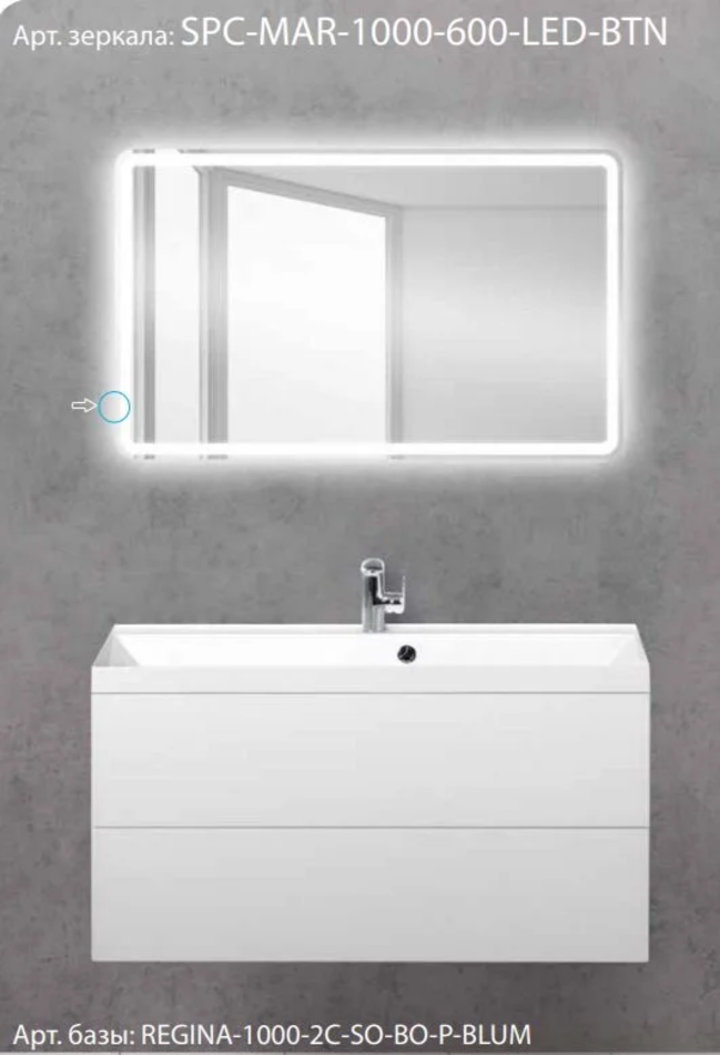 Зеркало BelBagno SPC-MAR-1000-600-LED-BTN 100 x 60 см со встроенным светильником и кнопочным выключателем