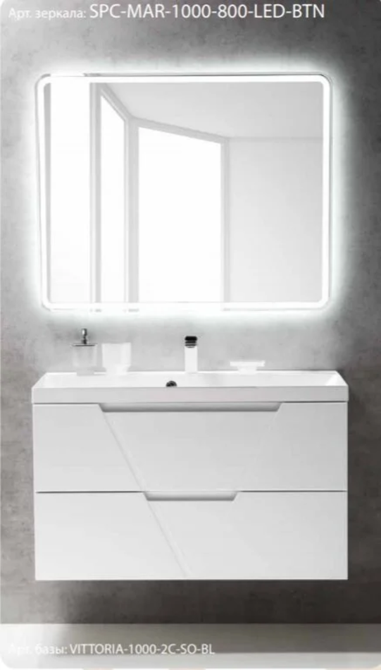 Зеркало BelBagno SPC-MAR-1000-800-LED-BTN 100 x 80 см со встроенным светильником и кнопочным выключателем
