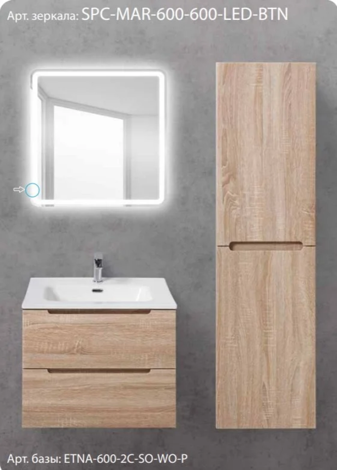Зеркало BelBagno SPC-MAR-600-600-LED-BTN 60 x 60 см со встроенным светильником и кнопочным выключателем