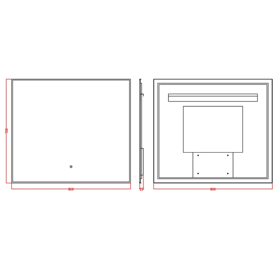 Зеркало с подсветкой Размер: 80 x 2,5 x 70 см Монтаж: подвесной Подсветка стены Выключатель: сенсорный Материал: металл Форма: прямоугольная Цвет рамки: черный