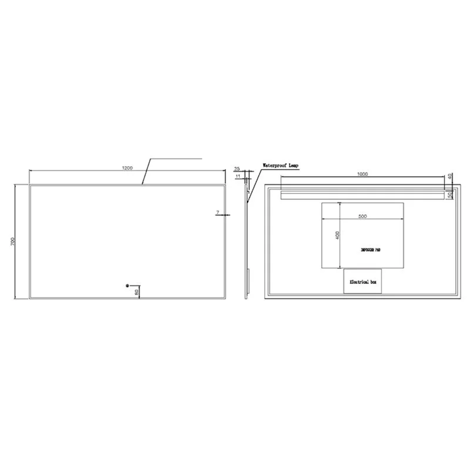Зеркало Boheme 543-120-B, 120 см, с подсветкой, сенсорный выключатель, антизапотевание, рама металл черный матовый