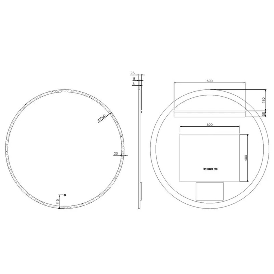 Зеркало Boheme 545-100-GM, 100 см, с подсветкой, сенсорный выключатель, антизапотевание, рама металл графит матовый