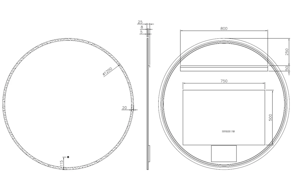 Зеркало Boheme 545-120, 120 см, с подсветкой, сенсорный выключатель, антизапотевание