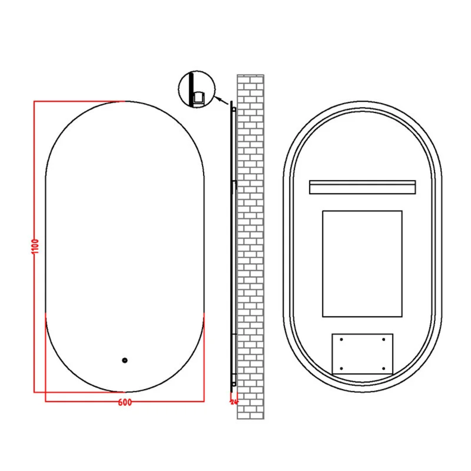 Зеркало Boheme 568-GM, 60 см, с подсветкой, сенсорный выключатель, антизапотевание, рама металл графит матовый