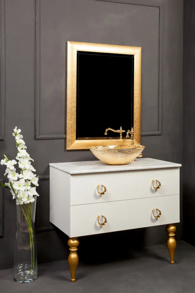 Зеркало Без подсветки Размер: 75 x 5 x 95 см Монтаж: подвесной Пескоструйное напыление ручной работы на раме Материал: массив дерева Форма: прямоугольная Цвет: золото