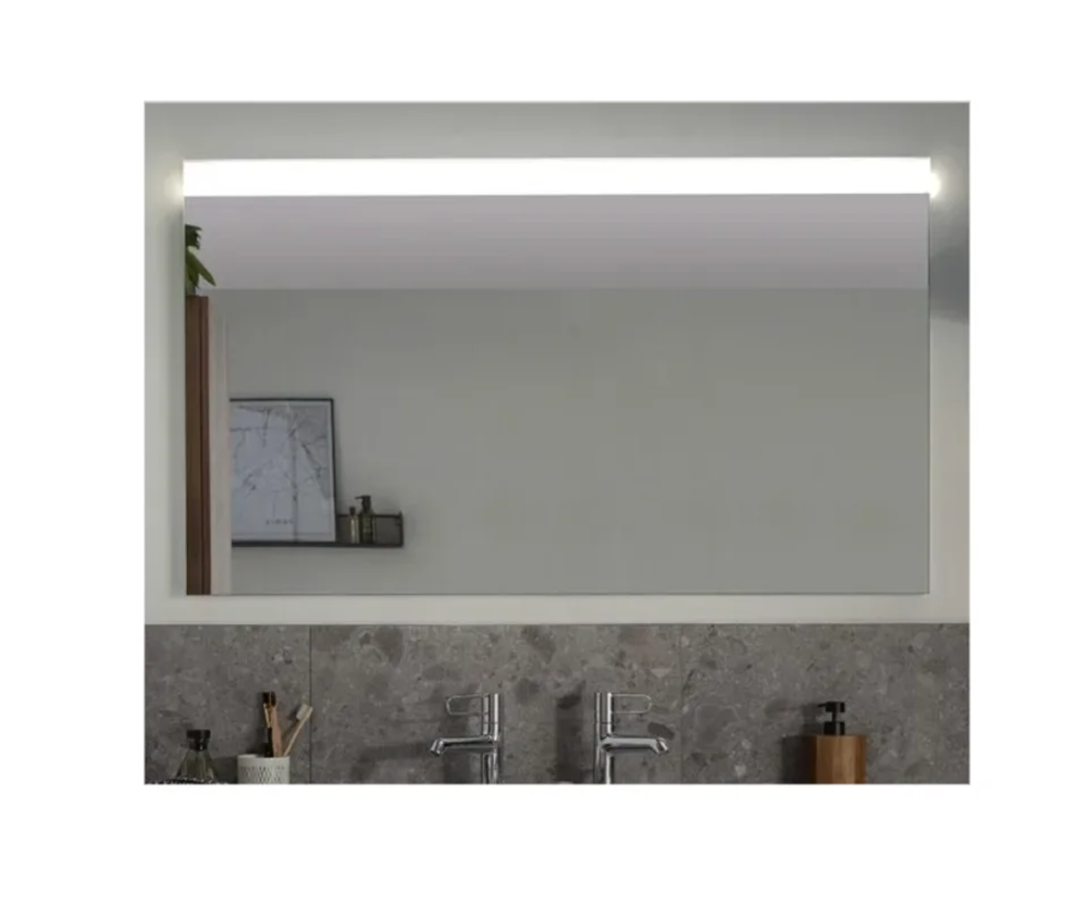 Линия светодиодной подсветки занимает всю ширину зеркала, увеличена в высоту для более эффективного освещения. Высота светодиодной полосы: 55 мм. Функция защиты от запотевания. Свет: 4000°K для света, близкого к дневному освещению. Инфракрасный датчик с возможностью перемещения. Предотвращает появление отпечатков пальцев на передней панели и дает потребителям возможность выбора расположения сенсора там, где они хотят.