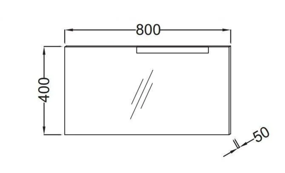 Размер: Ш80*Г5*В40 см Светодиодная подсветка Функция Анти-Пар Форма: прямоугольная Лампа: 230 В, 8Вт, класс II IP24 Вес: 14 кг