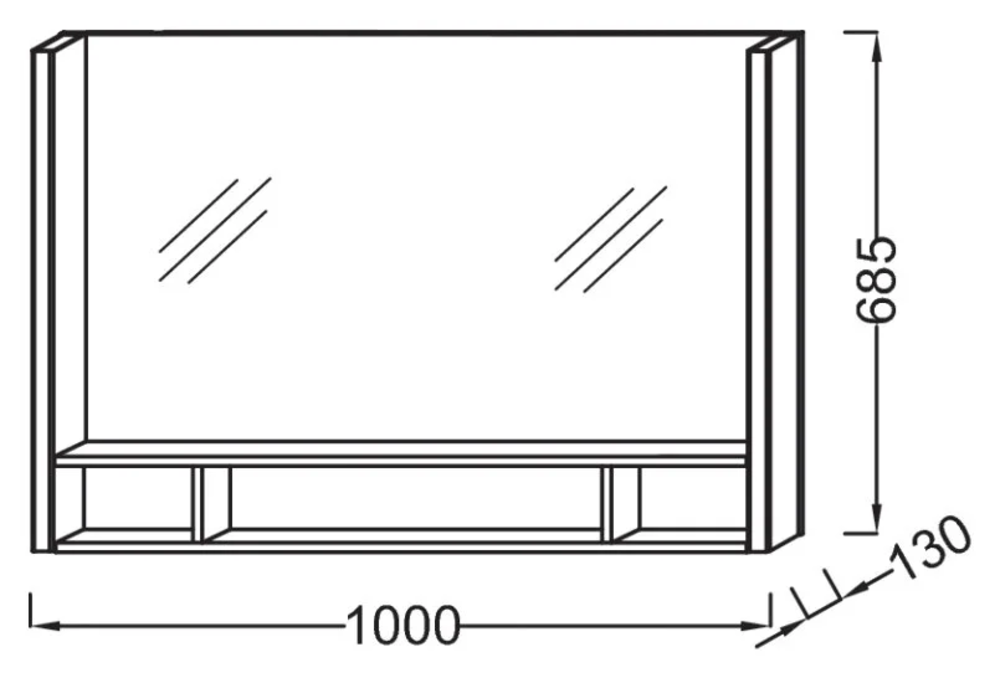 Размер: Ш100*Г13*В68,5 см Светодиодная подсветка справа и слева Полочка из цельного дерева Светильники: 230В, 14,4 Вт, класс II IP24