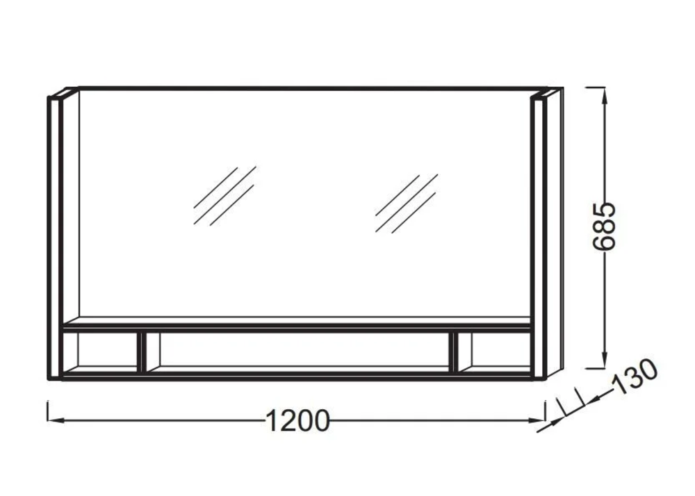 Размер: Ш120*Г13*В68,5 см Светодиодная подсветка справа и слева Полочка из цельного дерева Светильники: 230В, 14,4 Вт, класс II IP24