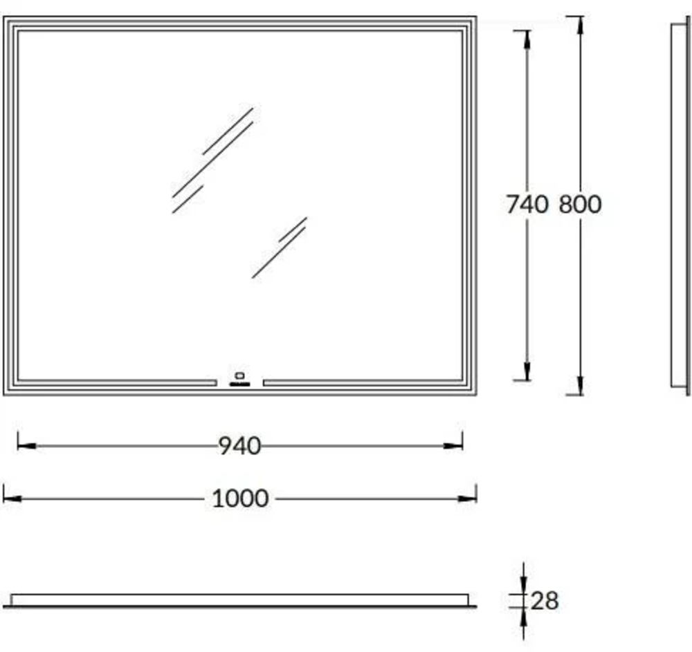 Зеркало Kerama Marazzi Mio 100 см, прямоугольное, с диммером, белое, MIO.mi.100.WHT