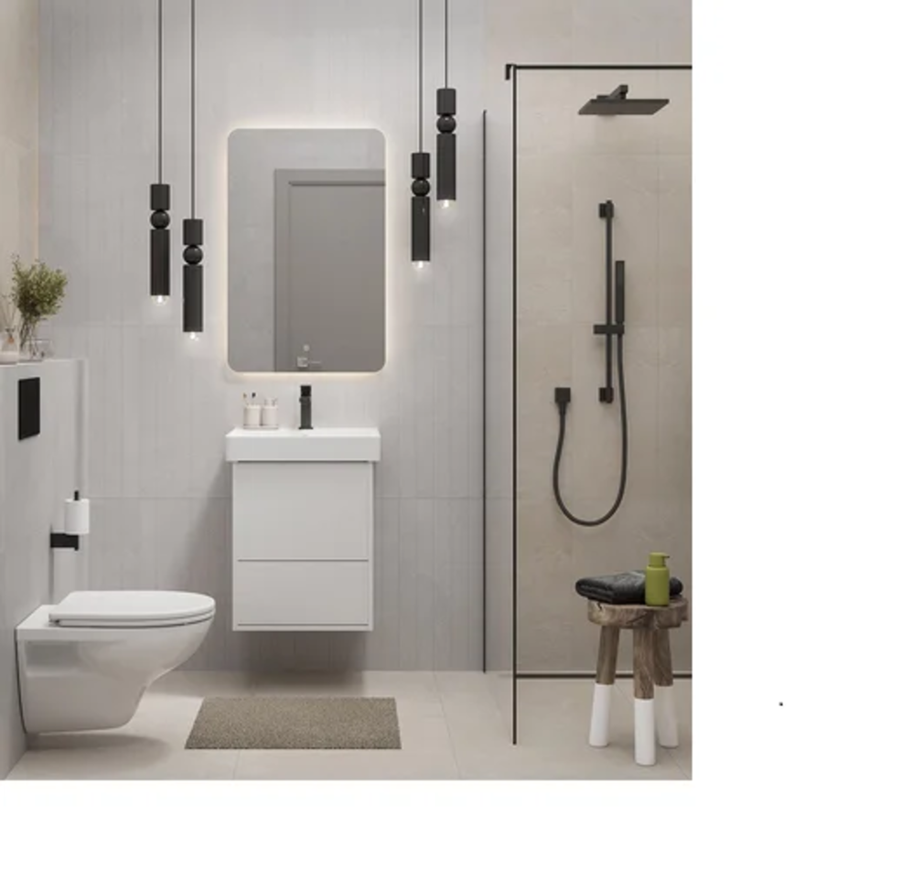 Зеркало PRO шириной 55 см со светодиодной подсветкой по всему периметру и сенсорной кнопкой включения-выключения. С помощью кнопки также возможна регулировка интенсивности подсветки.