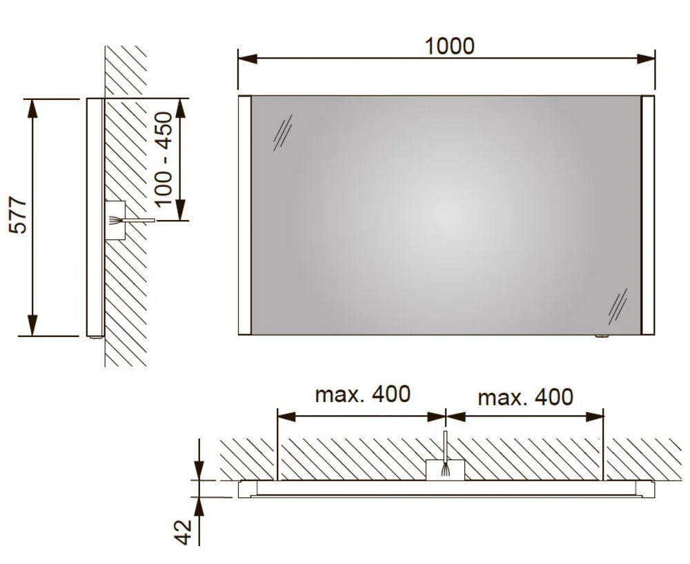 Зеркало Со светодиодной подсветкой Ширина: 100 см Глубина: 4.2 см Высота: 57.7 см Форма: прямоугольная Цвет: белый