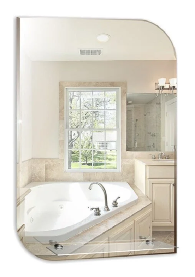 Зеркало Размер: 49 x 3 x 68 см Монтаж: подвесной Без подсветки Полка Фацет Материал: стекло Форма: нестандартная Цвет: белый