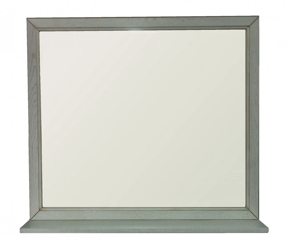 Зеркало Размер: 105 x 13x 92 см Монтаж: подвесной Без подсветки Полка Крепления Покрытие фасада: матовое Материал: стекло, массив дерева Форма: прямоугольная Цвет: белое золото