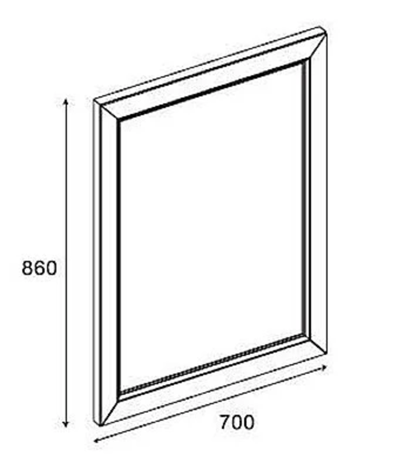 Зеркало Монтаж: подвесной Размер: 70 x 2.3 x 86 см Материал: массив дерева, шпонированное ВЛДСП Форма: прямоугольная Цвет: дуб темный
