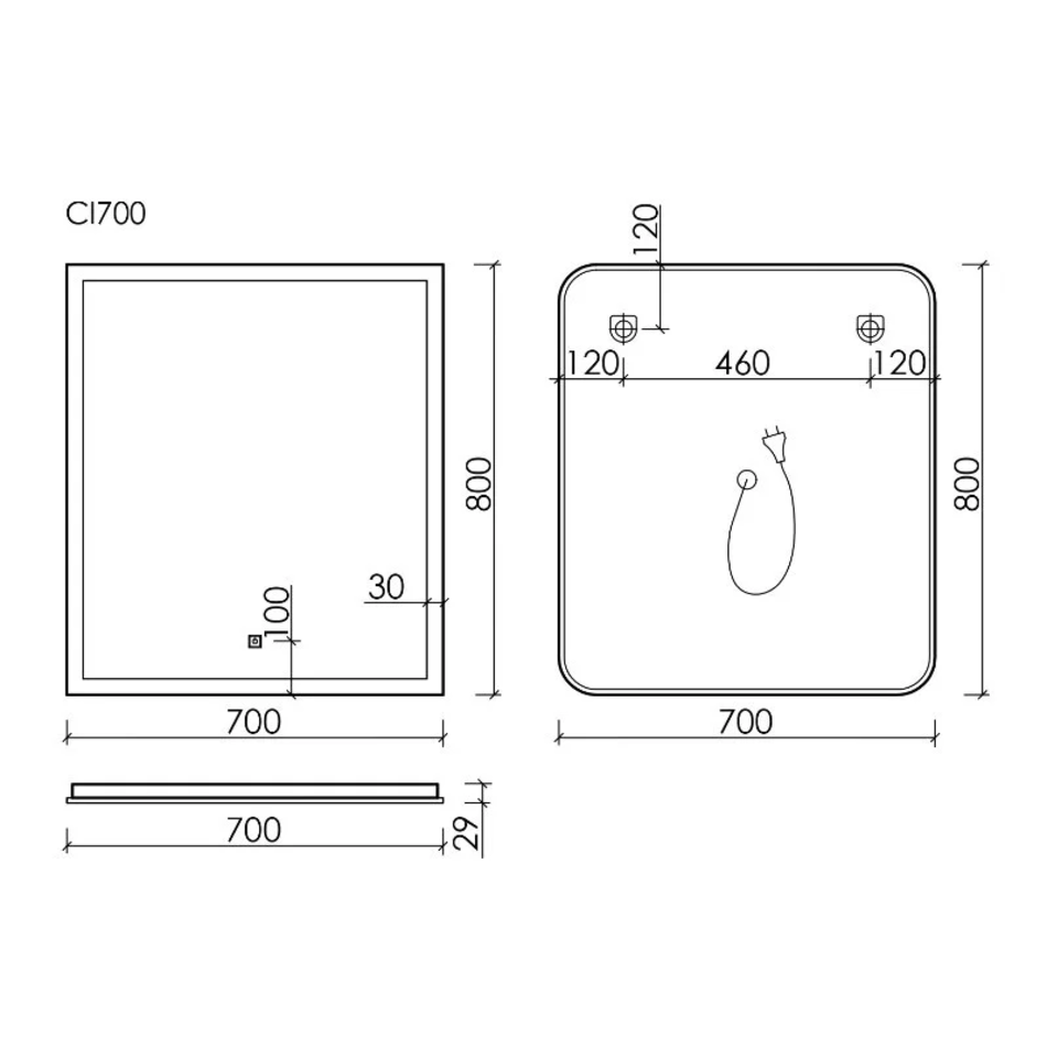 Зеркало Sancos City CI700, 70 x 80 см, с LED-подсветкой, сенсорный выключатель, холодный белый свет