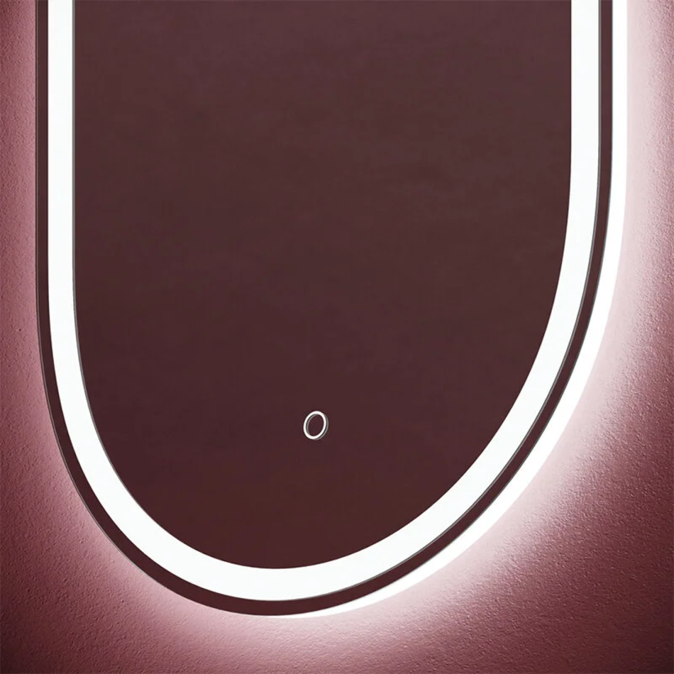 Зеркало овальное с фронтальной подсветкой. Настенный монтаж . Размер 450 x 900 мм.Температура света 6000 K. Управление прикосновением. Диммируемый сенсор регулировки подсветки.