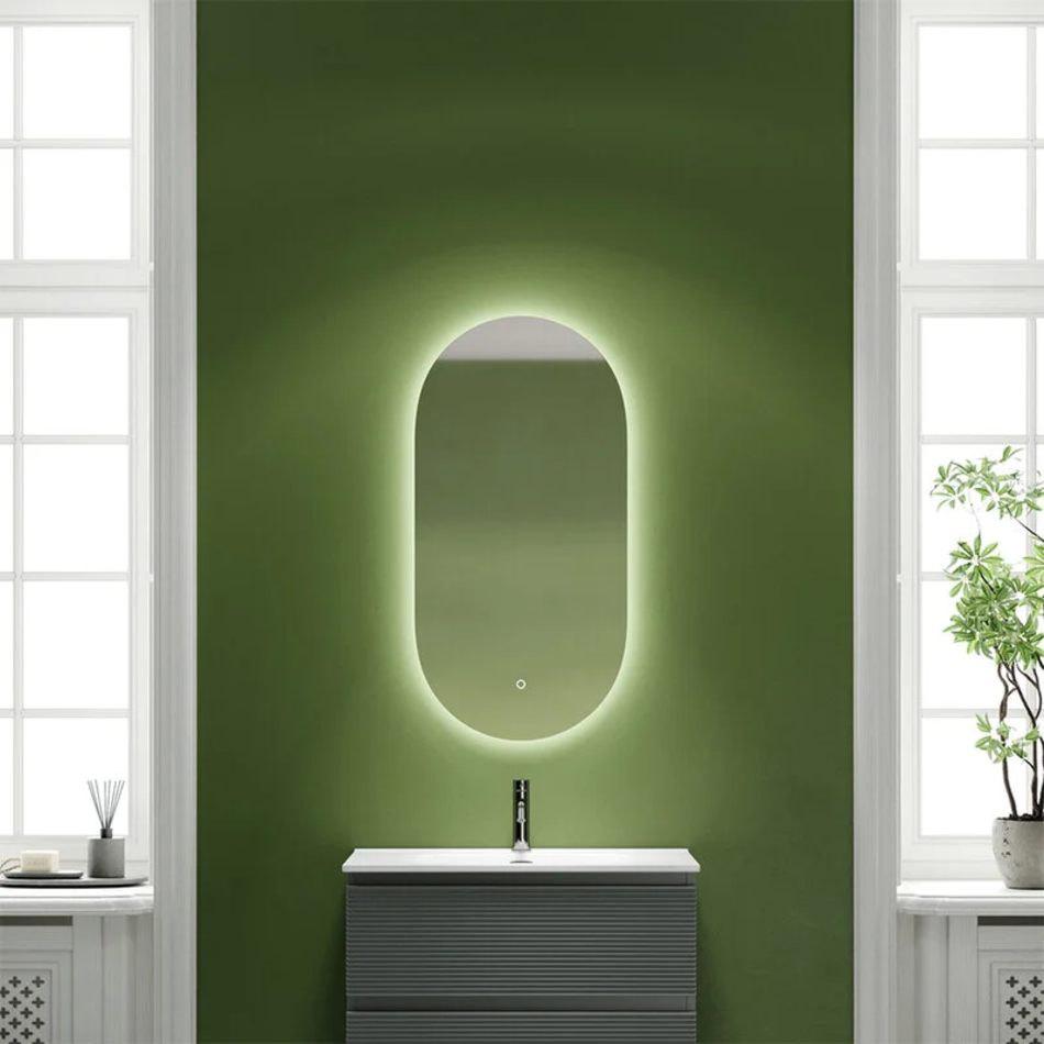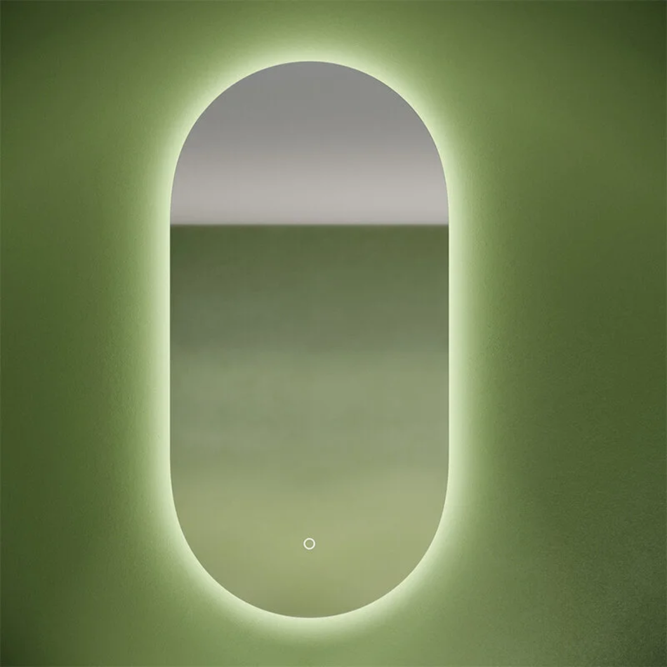 Зеркало овальное с фоновой подсветкой. Настенный монтаж . Размер 550 x 1050 мм.Температура света 6000 K. Управление прикосновением. Диммируемый сенсор регулировки подсветки.