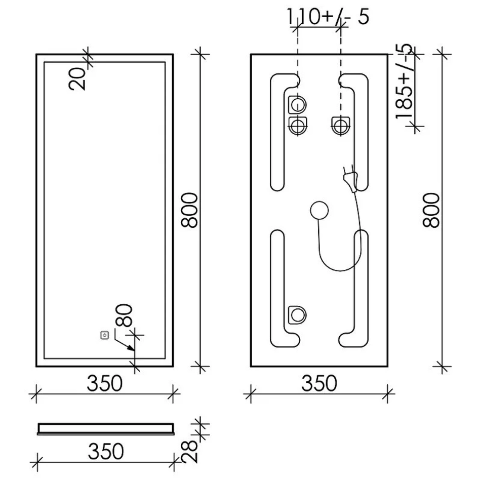 Зеркало Sancos Polo, 35 х 80 см, с подсветкой, PL35