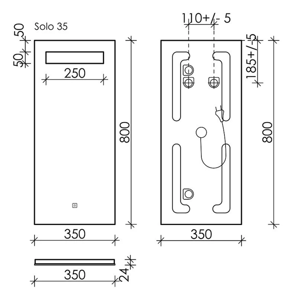 Зеркало для ванной комнаты Sancos Solo 350х800, LED подсветка; сенсорный выключатель, арт. SL35