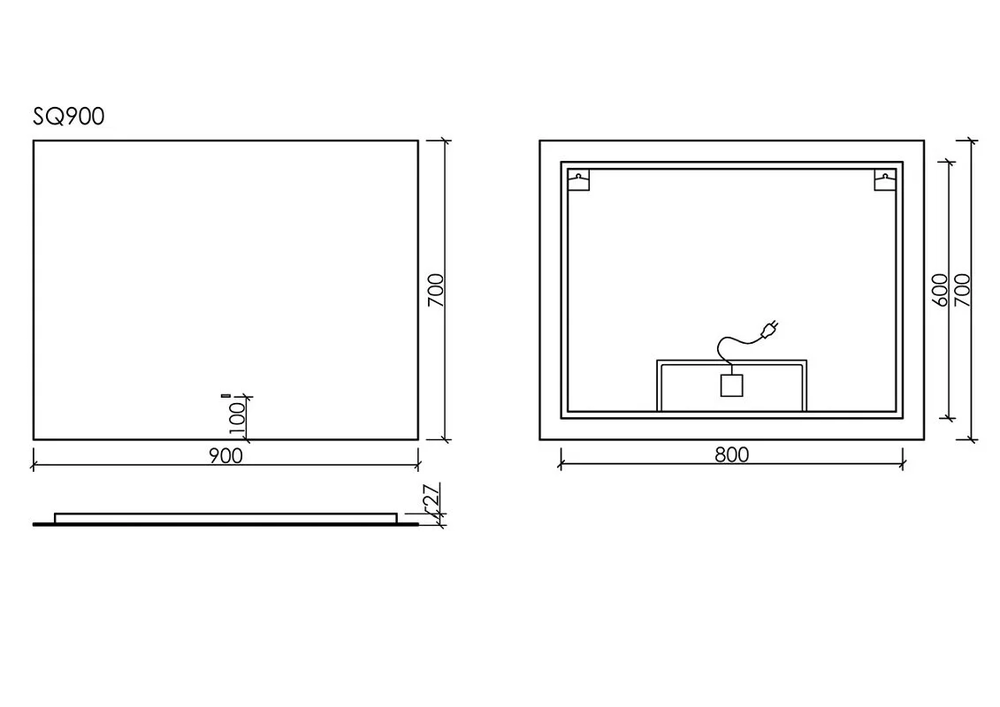 Зеркало Sancos Square SQ900 90 см, с подсветкой, c сенсорным выключателем