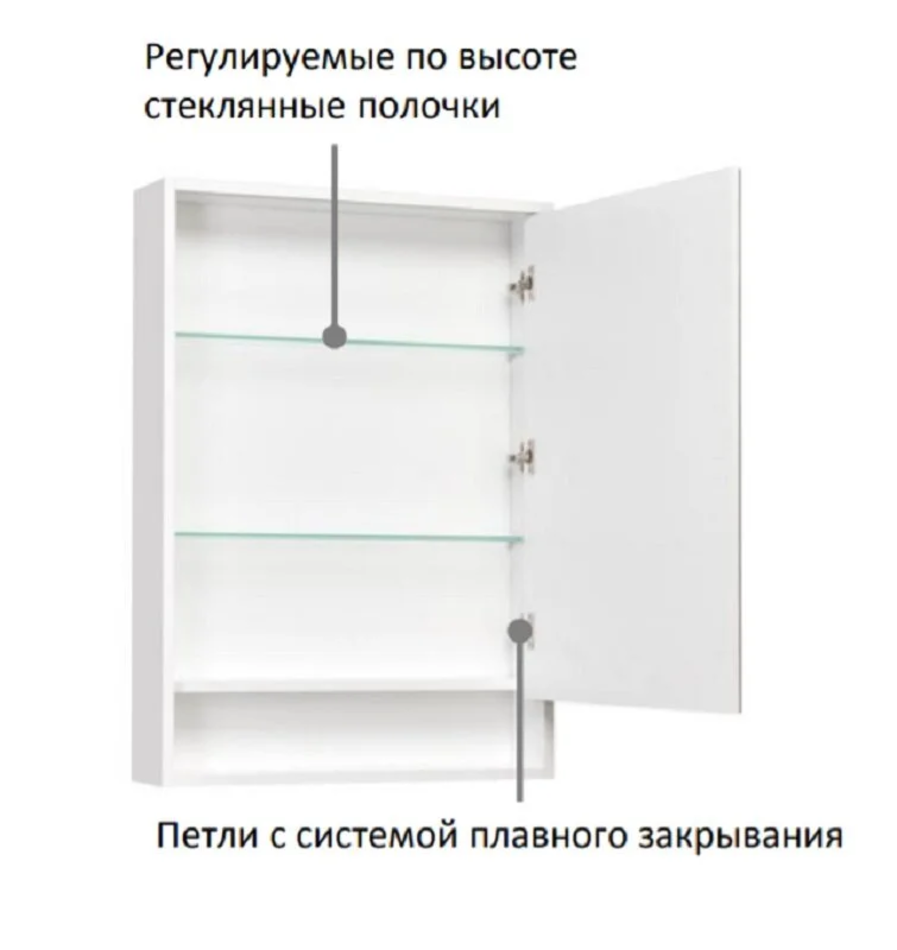 Зеркало-шкаф Монтаж: подвесной Размер: 60 x 15 x 85 см С подсветкой сверху Двери распашные: 1 Направляющие с интегрированной системой плавного закрывания Материал: МДФ Форма: прямоугольная Цвет: бетон пайн