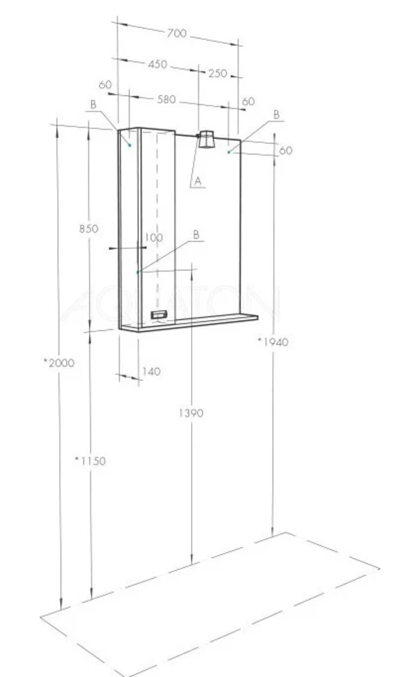 Зеркальный шкаф Акватон Бекка PRO 70 см с подсветкой, белый, дуб сомерсет, 1A214702BAC20