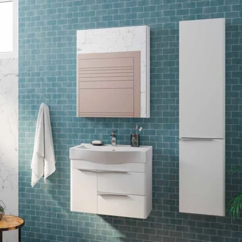 Зеркальный шкаф Размер: 65 x 15 x 81 см Распашные двери: 1 С механизмом доводчика Полки Монтаж: подвесной Материал: ЛДСП Покрытие: эмаль Форма: прямоугольная Цвет: белый