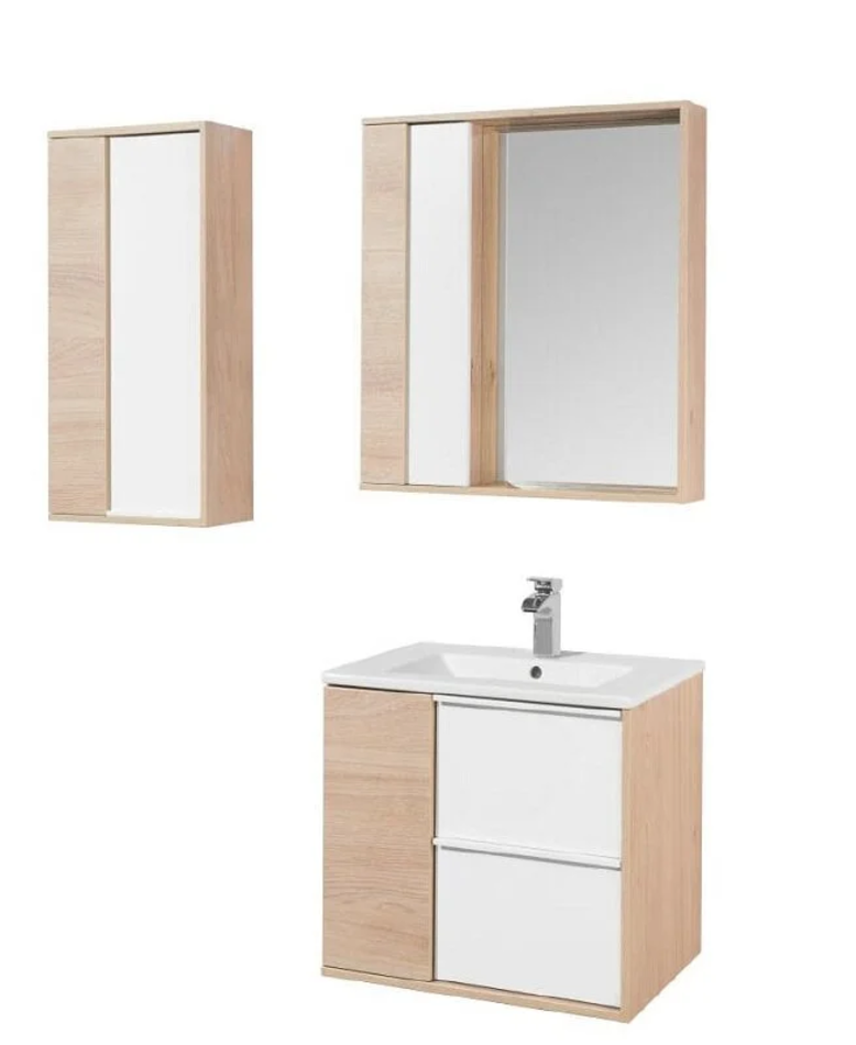 Зеркальный шкаф Акватон Бостон 60, 1A240202BN010, LED-подсветка, дуб эврика, белый глянец