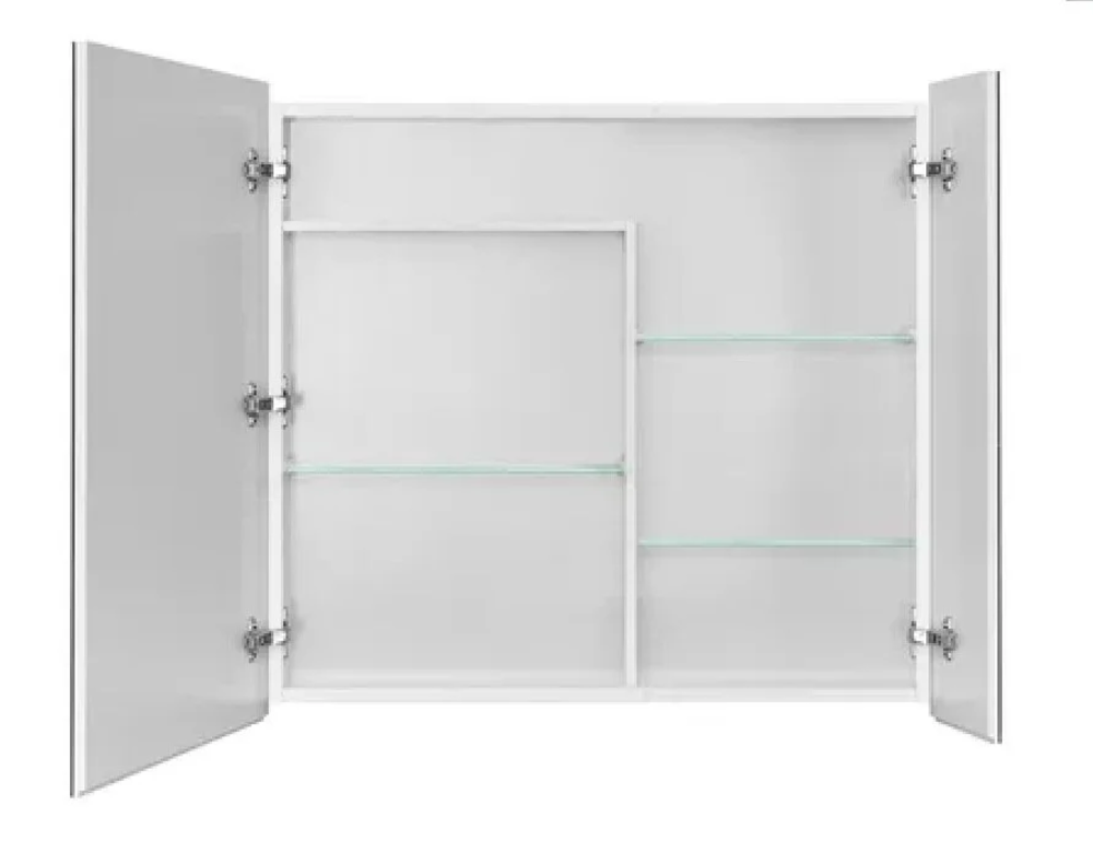Зеркальный шкаф Размер: 77 x 13 x 75 см Монтаж: подвесной Двери распашные: 2 Система плавного закрывания Полки стеклянные: 3 Материал: ЛДСП Форма: прямоугольная Цвет: белый