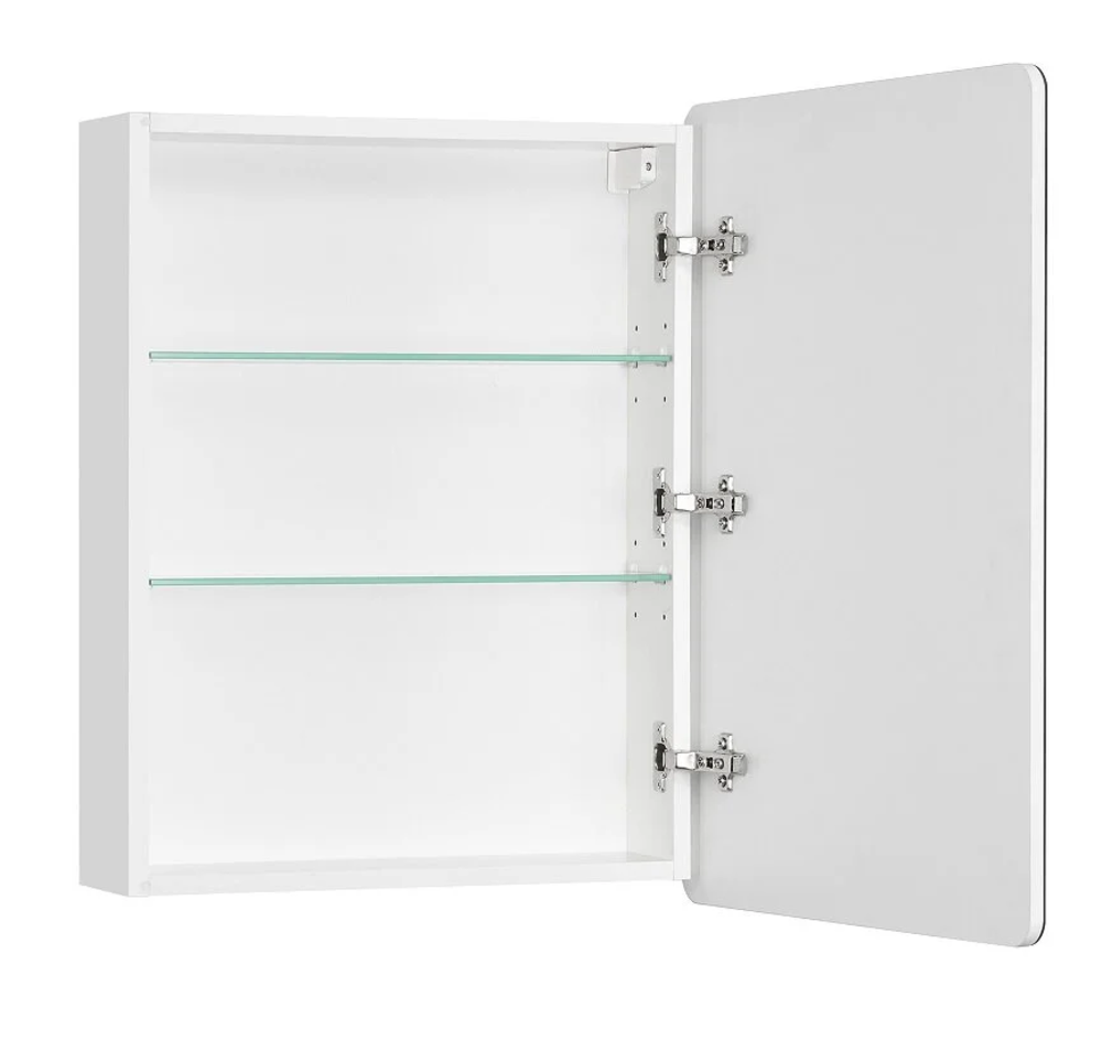 Зеркальный шкаф Размер: 55.1 x 14.1 x 70.1 см Распашные двери: 1 С механизмом доводчика Полки Монтаж: подвесной Материал: ЛДСП Покрытие: краска Форма: прямоугольная Цвет: белый