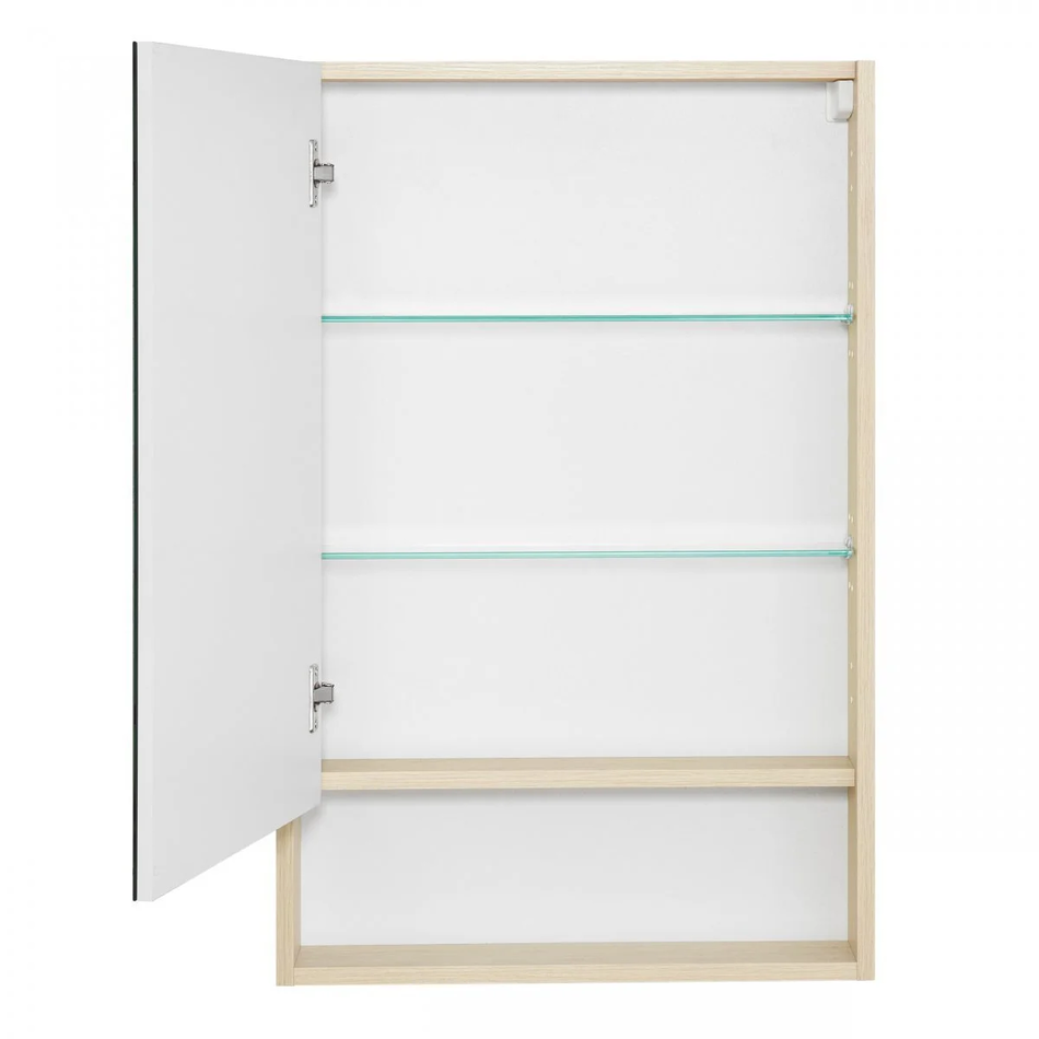 Зеркальный шкаф Размер: 55 x 13 x 85 см Монтаж: подвесной Двери распашные: 1 С доводчиками Покрытие: эмаль Материал: ЛДСП Форма: прямоугольная Цвет: белый/дуб верона